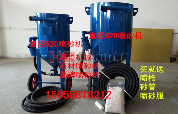 配置說明:直徑420MM和直徑520MM機(jī)器的主要配置有:噴砂管6米,噴砂服一套,噴砂槍一套,壓力表、接頭等全部配好,接上氣(客戶需自配11千瓦以上空壓機(jī))加上沙子直接可以噴砂.