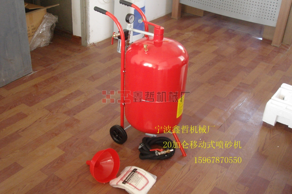 配有4個噴嘴和關閉閥,壓力表,陶瓷噴嘴,4米砂管,填裝漏斗,氣水分離器,6"橡膠輪和帆布面罩。